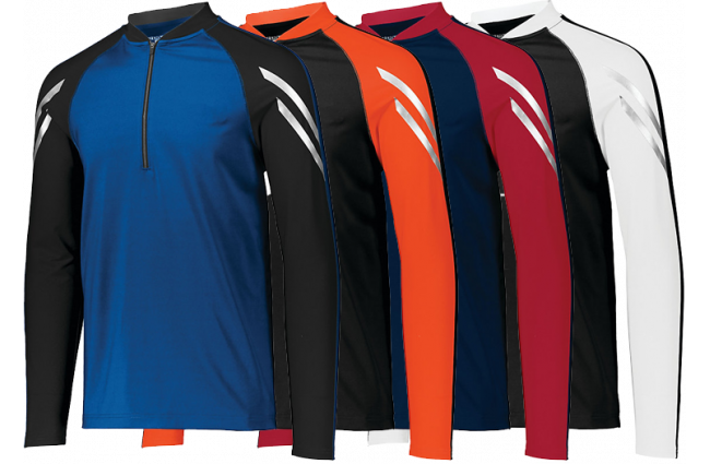 Size chart 9 ounce 50% cotton/50% polyester smooth athletic fleece. Contrast color collar facing and zipper. Raglan sleeves. Contrast three-needl..